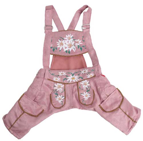 Classici pantaloni tirolesi in alcantara. Le stelle alpine sono stampate.