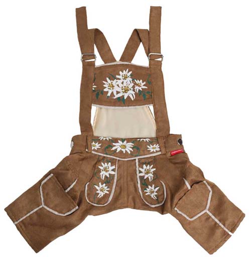 Classici pantaloni tirolesi in alcantara. Le stelle alpine sono stampate.