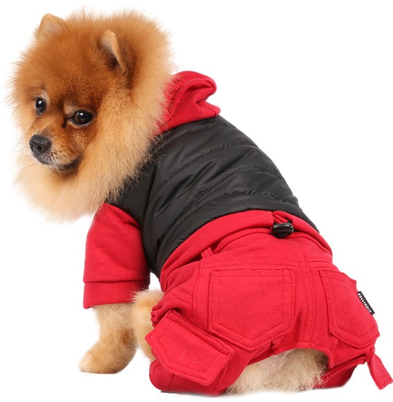 Tuta per cani quattrozampe con corpetto imbottito ed impermeabile. Geniale combinazione !!! Chiusura velcro.