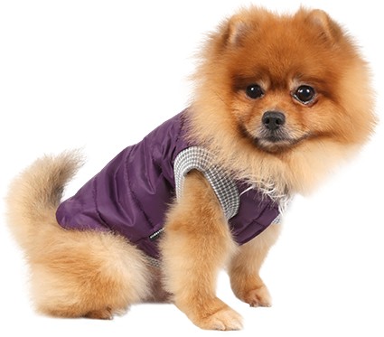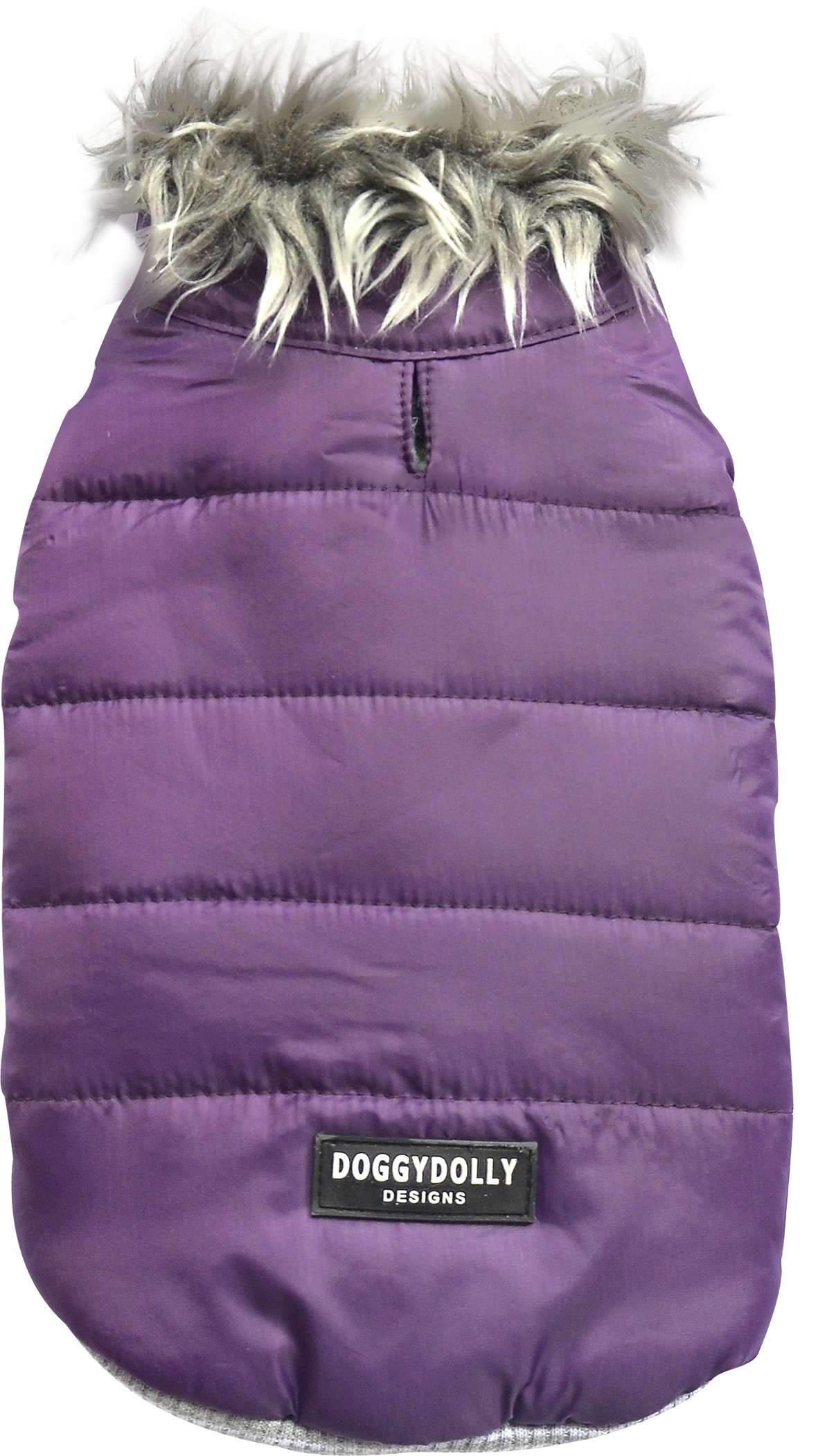 Giubbottino 2 zampe, impermeabile, polsini elasticizzati, imbottito e collo in pelo sintetico. Internamente foderato con morbido pile. Chiusura in velcro.