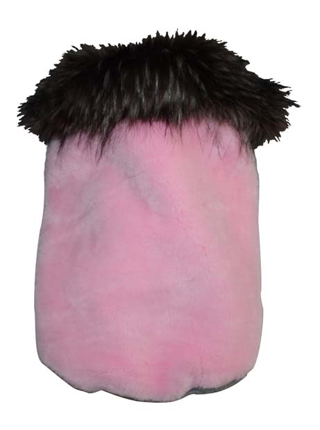 Giubbotto per cani rosa con collo in pelo tutto rigorosamente ecologico, rifinito con un bordo in maglina e foderato internamente.Chiusura con velcro.