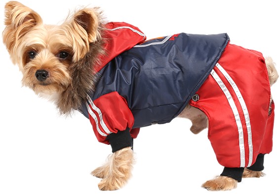 Tuta per cani 4 zampe blu e rossa