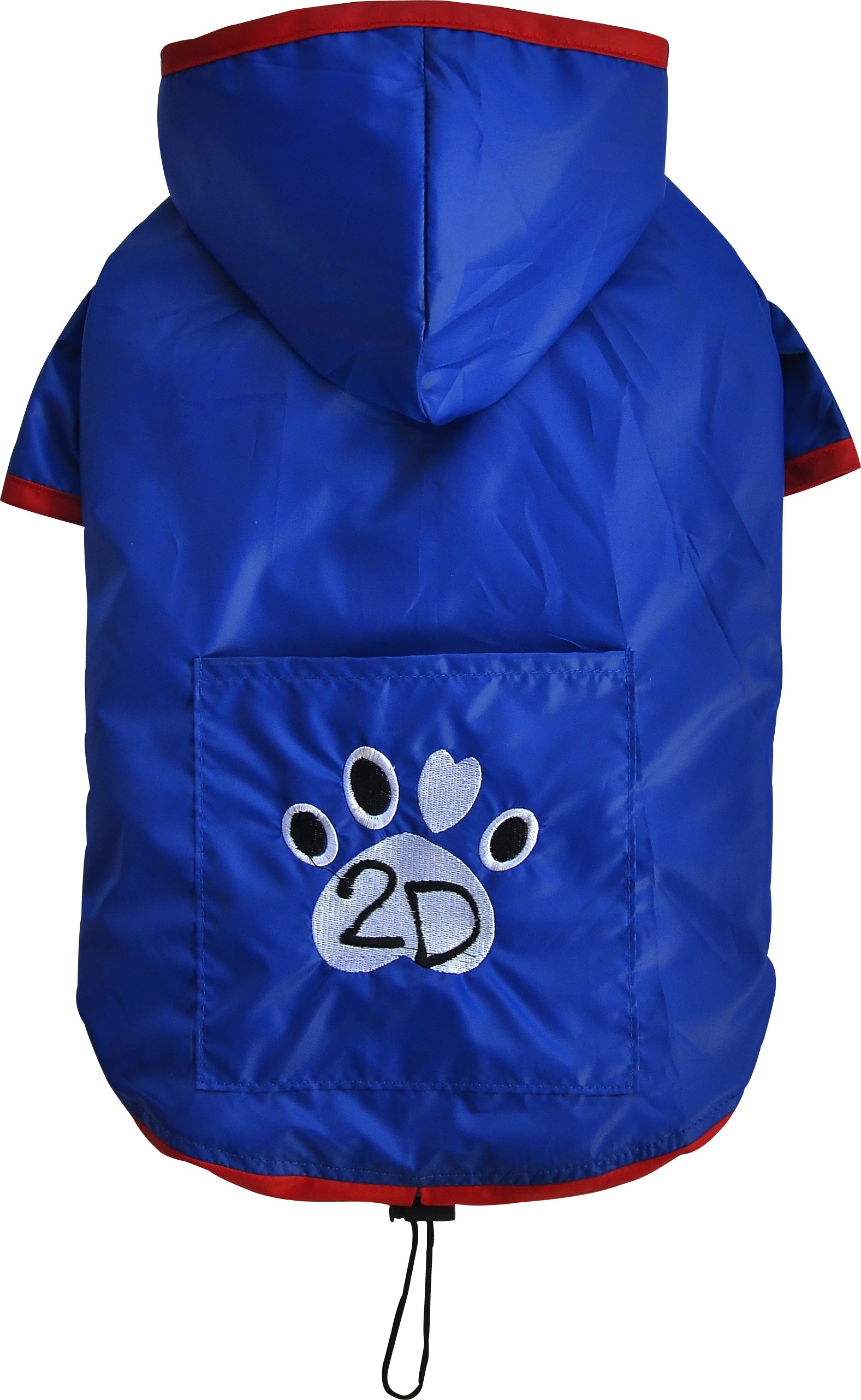 Impermeabile blu elettrico per cani taglie speciali con tasca arricchita da impronta zampa e logo ricamati. Coulisse regolabile sul fondo. Indispensabile!