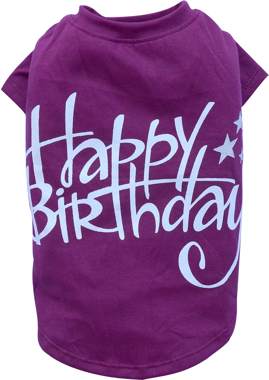 T-shirt per cani taglie speciali in cotone color melanzana con stampa bianca HAPPY BIRTHDAY. Non solo per il suo compleanno . . .