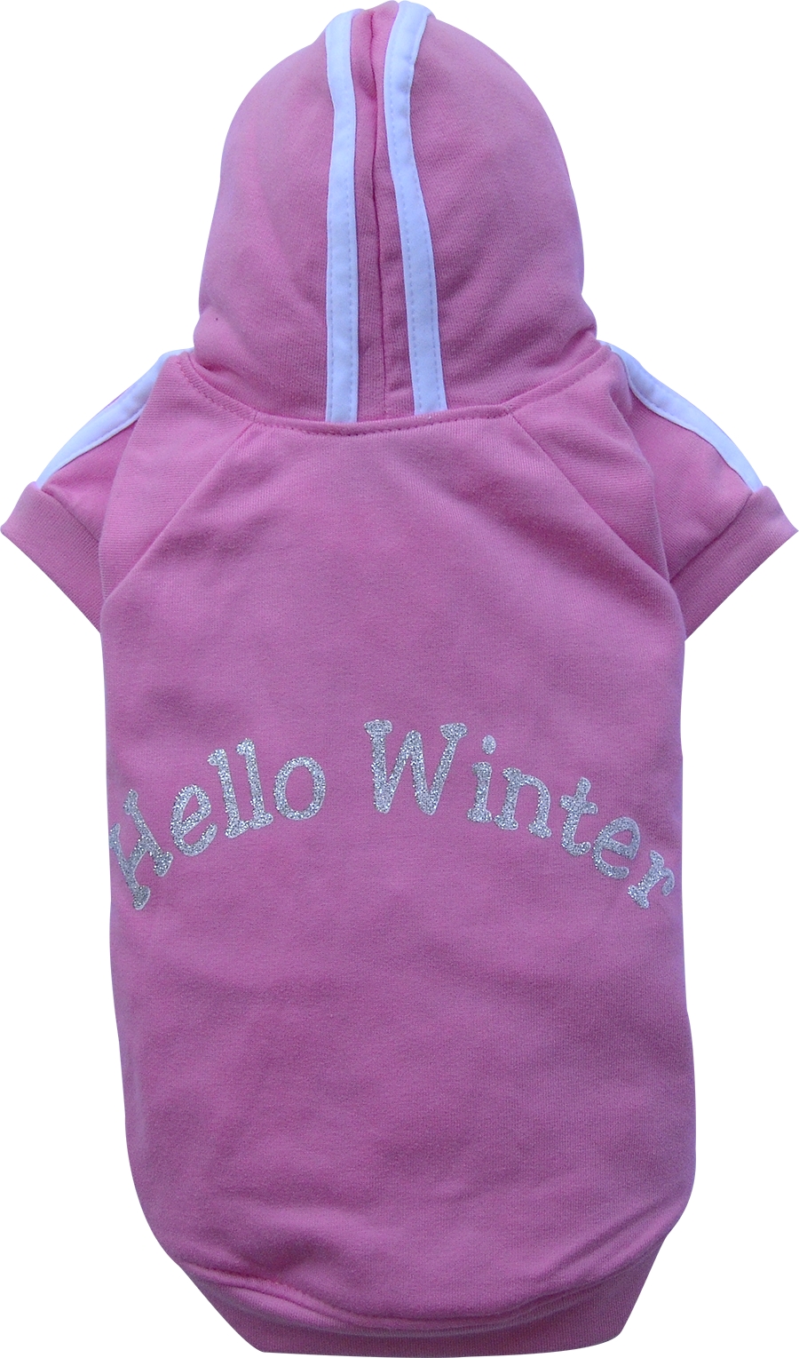 Felpa per cani in cotone garzato con cappuccio e stampa sul dorso glitterata. Bande laterali in contrasto.