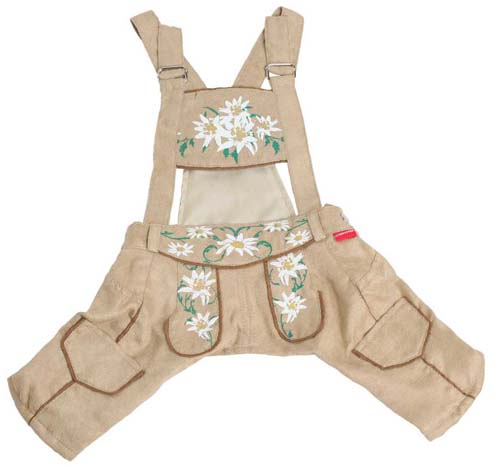 Classici pantaloni tirolesi in alcantara. Le stelle alpine sono stampate.